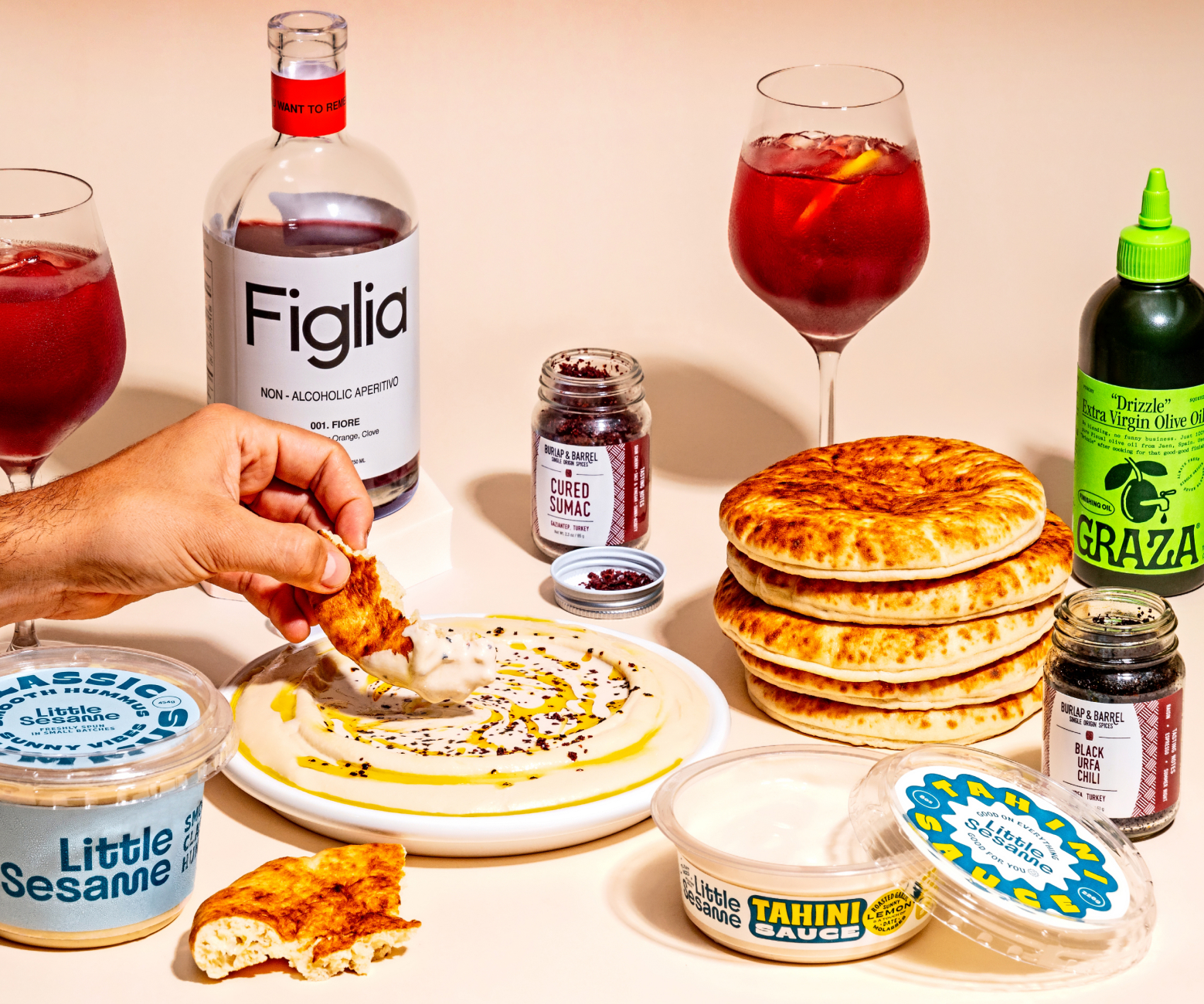Mix and match any of our signature hummus tubs, tahini sauce and pita.